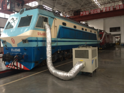 客户诉求: 火车头内部检修时机车必须断电,内部空调无法启动,所有降温设备都不能再内部使用,加上机车头内部空间小,相对密封,内部局域温度可以达到40度以上,严重影响工人工作效率,并引发了多起中暑事故。